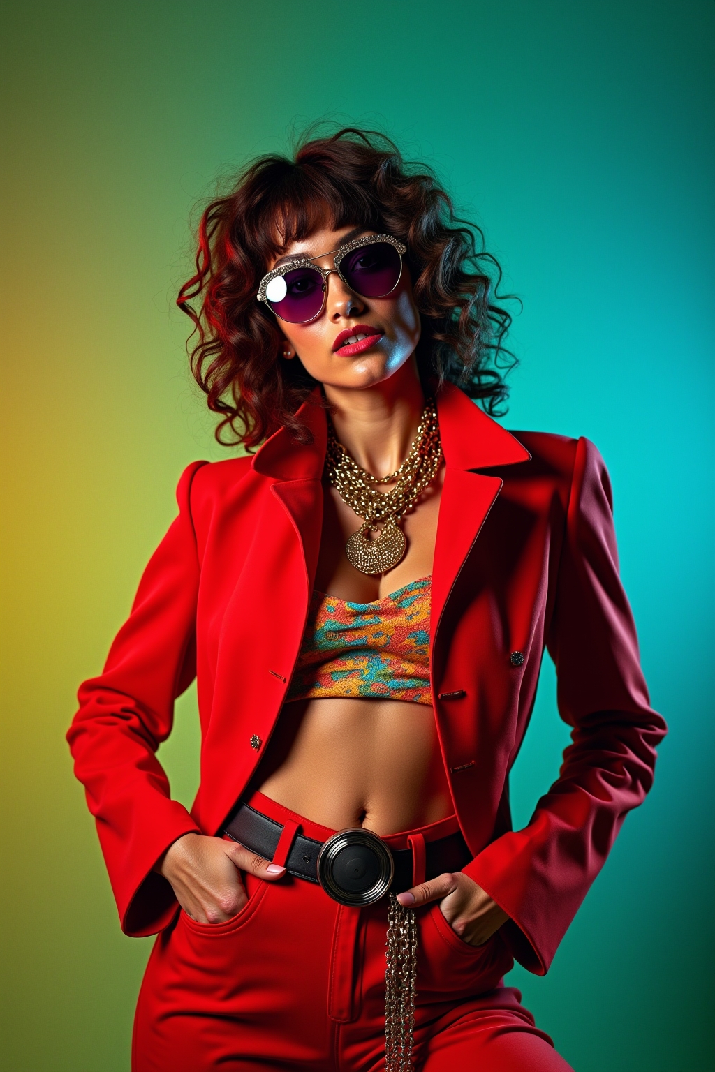 - Leuchtende Farben und glitzernde Materialien definieren festliche 70er Outfits