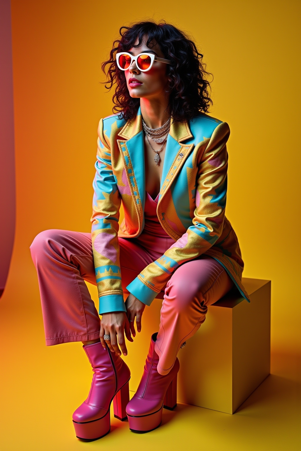 - Plateauschuhe und auffällige Accessoires komplettieren den Look für besondere Anlässe