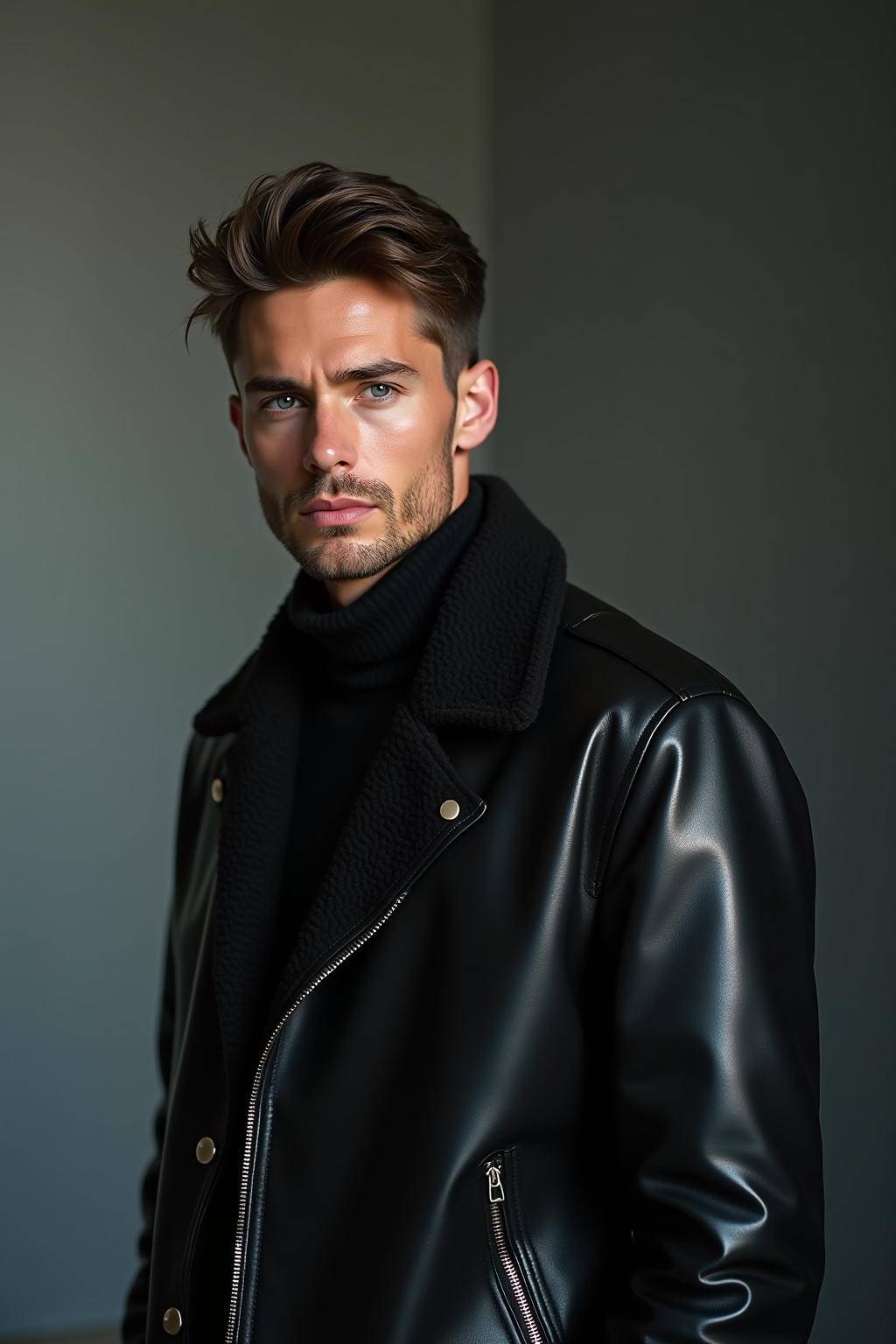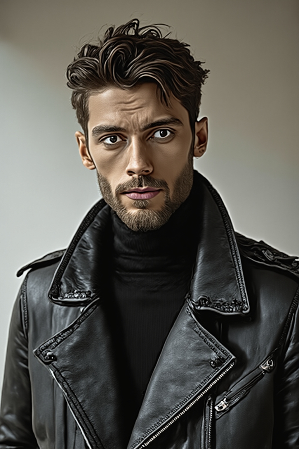 Schlanke bis normal gebaute Männer können mit einer weiten Lederjacke gezielt Volumen und Struktur im Oberkörperbereich schaffen. Der rechteckige, großzügige Schnitt des Blousons kaschiert schmale Schultern und verleiht dem Träger eine präsentere Silhouette. Männer mit athletischer Figur profitieren ebenfalls, da die kantige Schnittform ihre breiten Schultern betont, ohne einengend zu wirken. Bei kräftigeren Körpertypen sollte die Oversized-Jacke nicht zu extrem ausfallen – hier empfiehlt sich eine leicht strukturierte Variante mit definiertem Abschluss am Bund. Die quadratische Form sollte nicht zu weit über die Hüfte reichen, um proportional ausgewogen zu wirken.