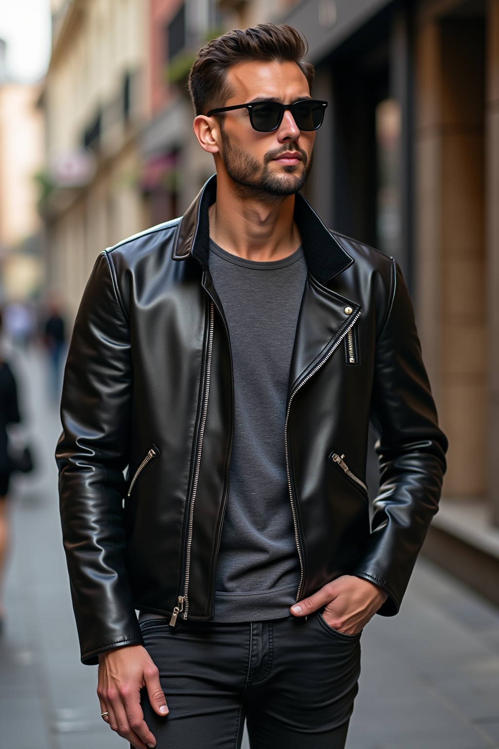 Streetstyle-Kombinationen mit kurzen Lederjacken für den urbanen Mann