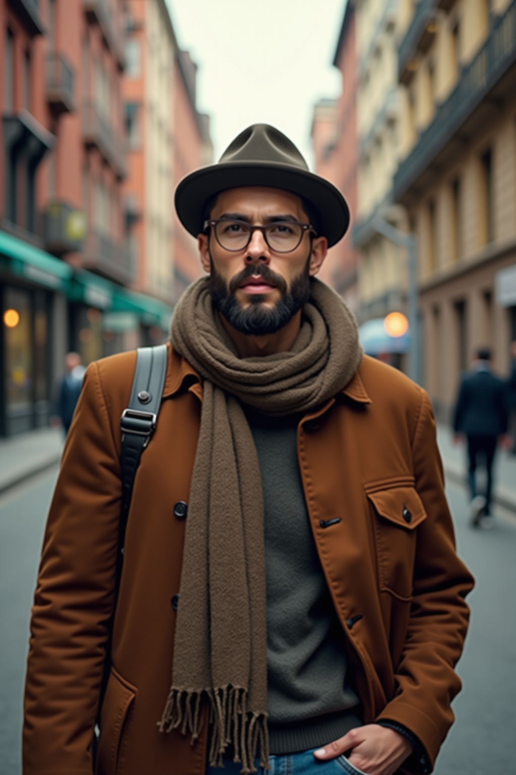 Herbstliche Accessoires verleihen jedem Männeroutfit den letzten Schliff und steigern sowohl Funktionalität als auch Stilfaktor. Ein hochwertiger Wollschal in erdigen Farbtönen oder mit dezentem Muster schützt vor kühler Witterung und setzt gleichzeitig modische Akzente. Lederhandschuhe in Braun- oder Burgundertönen bieten Wärme und Eleganz. Kopfbedeckungen wie Beanies aus Merinowolle oder flache Schiebermützen (Flat Caps) komplettieren den Herbstlook perfekt. Bei Brillenträgern sind Modelle mit Acetatrahmen in Schildpatt-Optik saisongerecht. Für Businessoutfits empfehlen sich schmale Strickkrawatten oder Einstecktücher mit herbstlichen Mustern. Nicht zu vergessen: Eine wasserdichte Umhängetasche oder ein Rucksack aus gewachstem Canvas verbindet Funktionalität mit dem typischen Herbstflair.