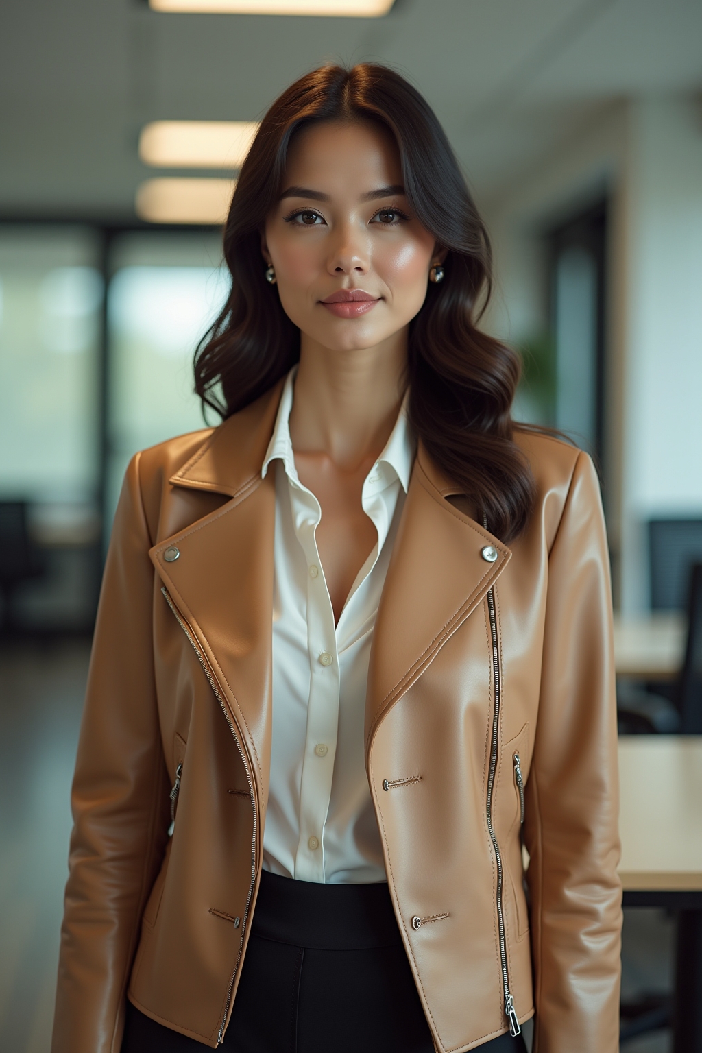 - Beige Lederjacken wirken im Büro professioneller als schwarze Varianten