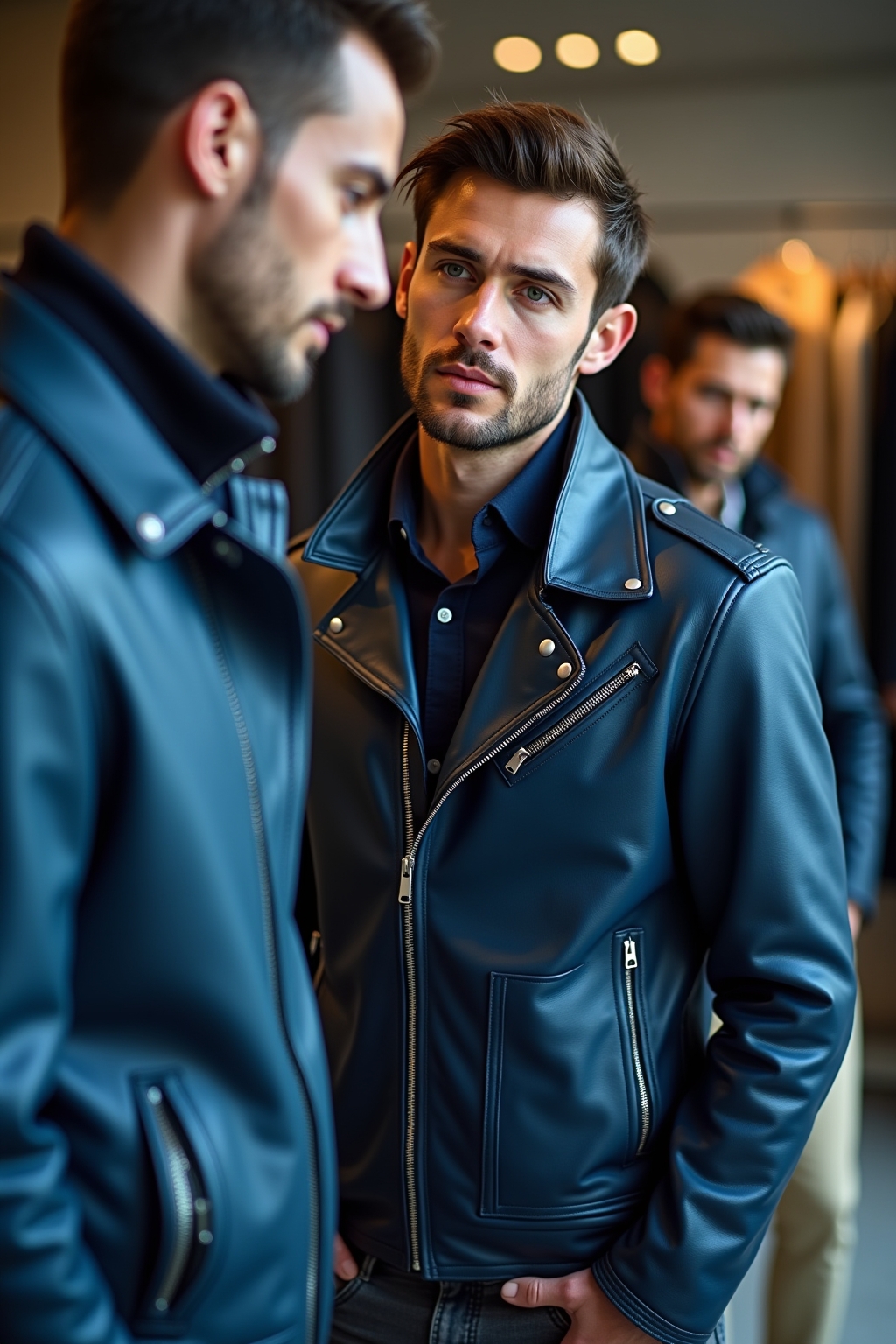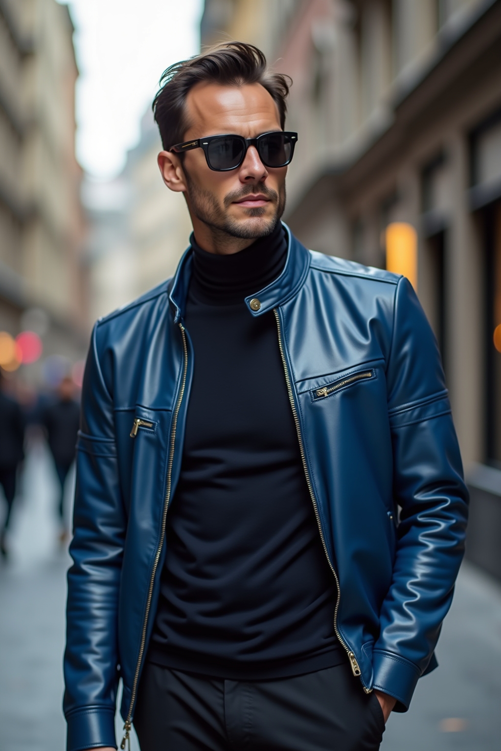 Saisonaler Herren-Look: Blaue Lederjacken für verschiedene Jahreszeiten