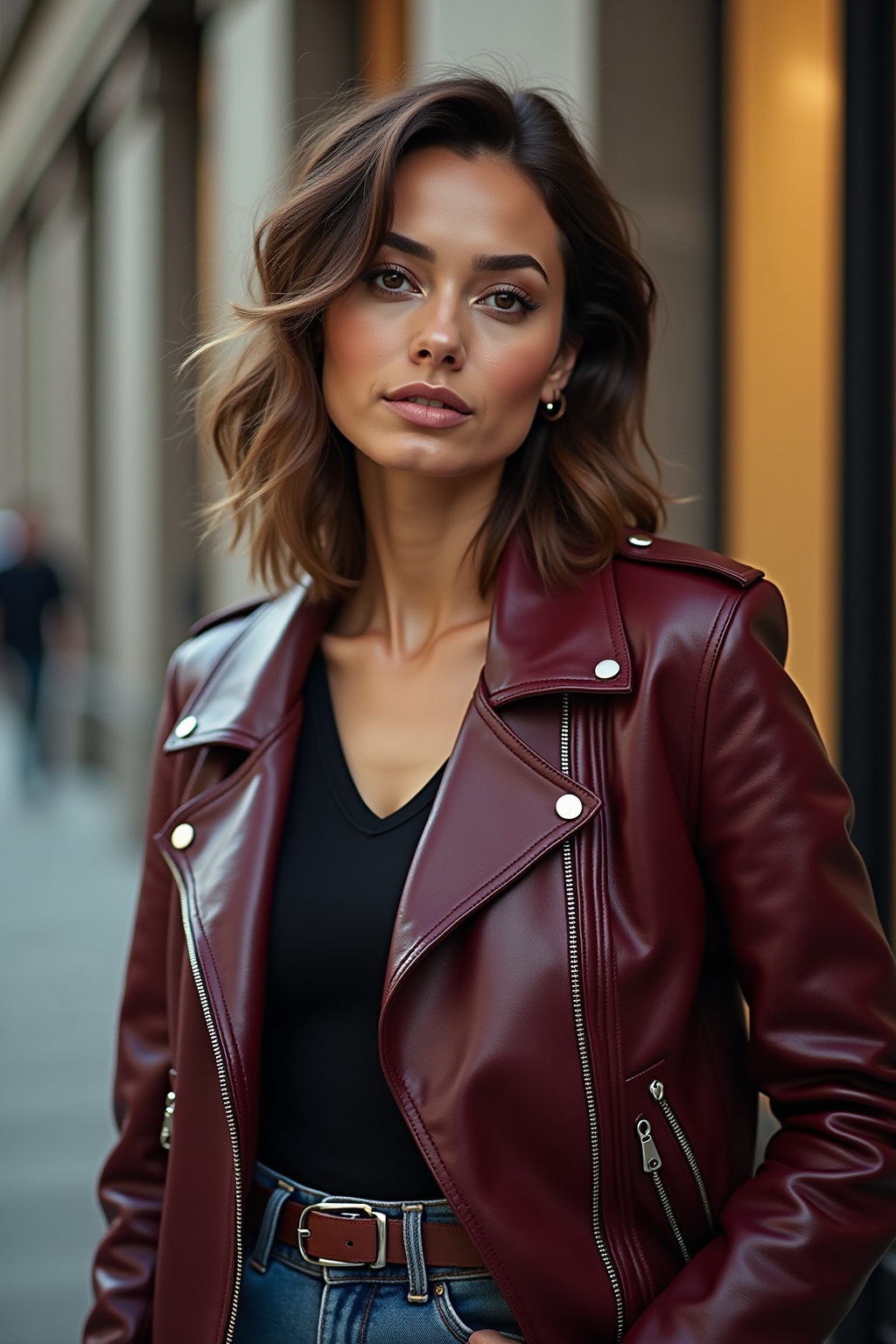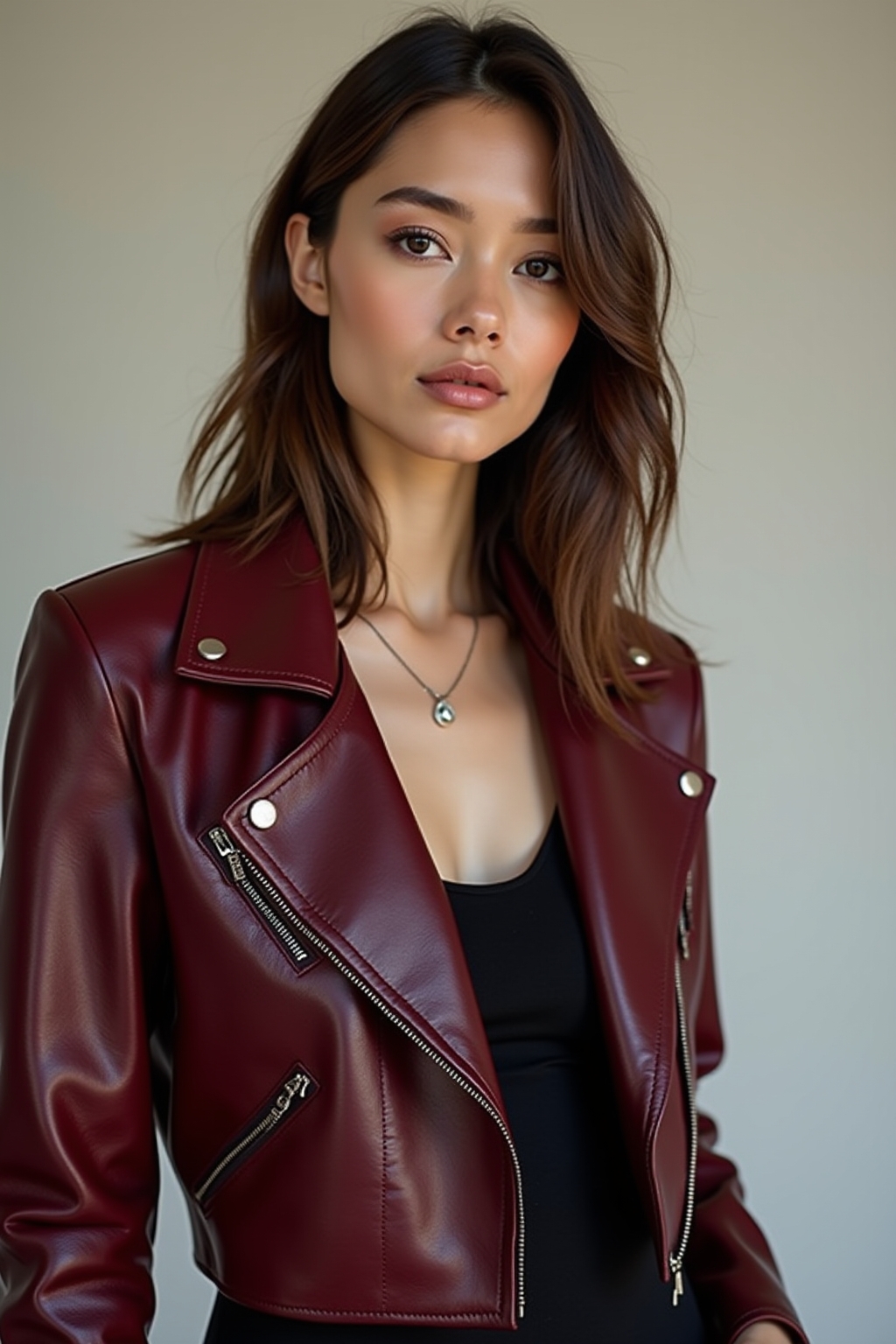 Bordeauxrote Lederjacken lassen sich ideal mit neutralen Farben wie Schwarz, Beige und Denimblau kombinieren und werten so selbst einfache Outfits sofort auf.