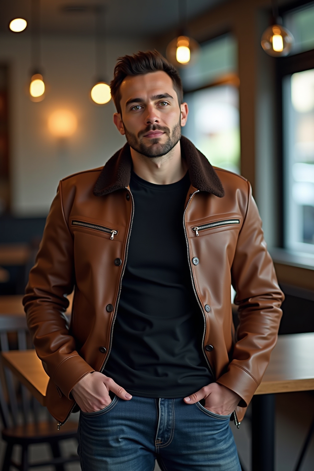Für einen entspannten Alltagslook eignen sich braune Lederjacken perfekt in Kombination mit einer gut sitzenden Jeans und einem schlichten T-Shirt. Die natürliche Farbpalette der braunen Lederjacke harmoniert besonders gut mit dunkelblauen oder schwarzen Jeans, wobei auch hellere Denim-Varianten einen interessanten Kontrast schaffen können. Wer den Look aufwerten möchte, kann dies mit passenden Accessoires tun – ähnlich wie bei den Styling-Tipps für Damen mit braunen Lederjacken, funktionieren auch bei Herren hochwertige Uhren, Ledergürtel oder markante Boots als stilvolle Ergänzungen. Mit weißen, grauen oder schwarzen T-Shirts bleibt der Look zeitlos und lässt die braune Lederjacke als charakterstarkes Highlight wirken.