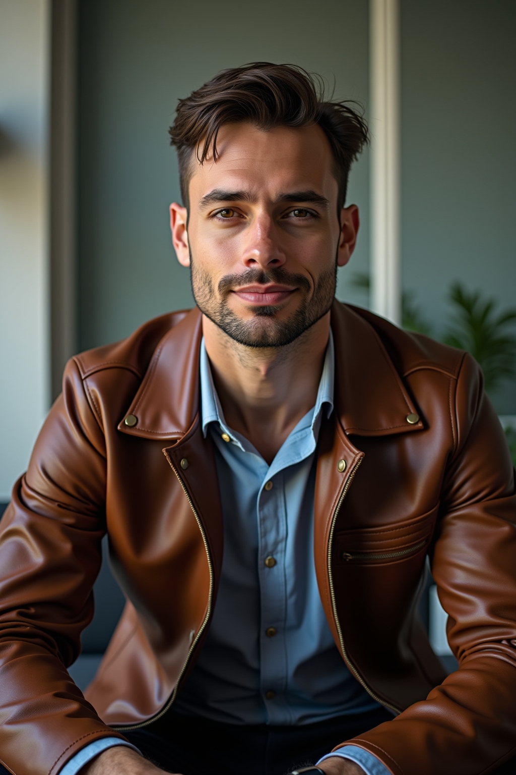 Wie kombiniere ich eine braune Lederjacke für einen Business-Casual Look?
