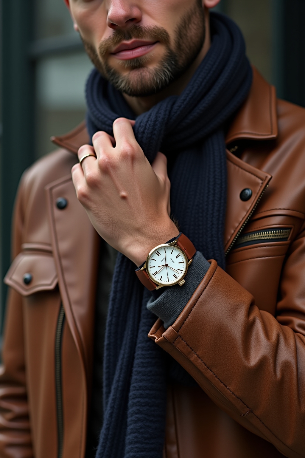 Accessoires richtig wählen: Das perfekte Herren-Outfit mit brauner Lederjacke abrunden