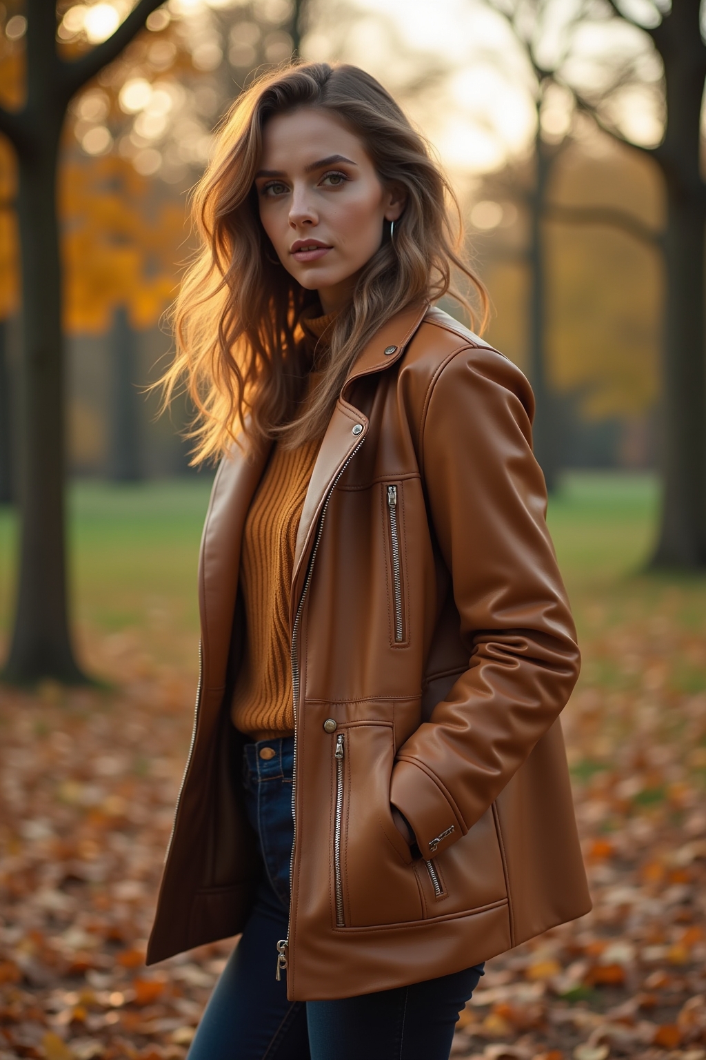 Mit dem Einzug des Herbstes wandelt sich nicht nur die Natur in ein warmes Farbenmeer, sondern auch unsere Garderobe passt sich den kühleren Temperaturen an. Eine Lederjacke in Camel erweist sich dabei als wahres Styling-Wunder für Damen, die sowohl Eleganz als auch Lässigkeit in ihre herbstlichen Outfits integrieren möchten. Die warme Farbnuance harmoniert perfekt mit den goldenen Blättern und verleiht jedem Look eine zeitlose Raffinesse, die sowohl zu Jeans als auch zu femininen Kleidern eine stilvolle Ergänzung darstellt.