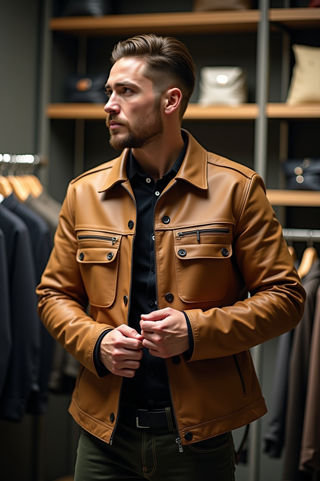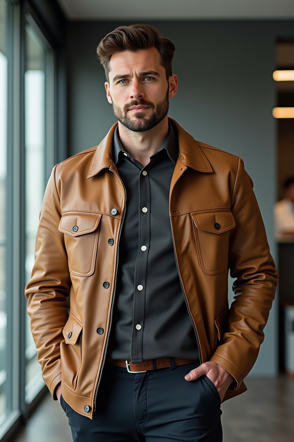 Die Camel-Lederjacke revolutioniert das klassische Business-Casual-Konzept und bietet Männern eine elegante Alternative zum gewohnten Blazer. Kombiniert mit einer gut sitzenden Chinohose und einem hochwertigen Hemd, kreiert sie einen Look, der sowohl Professionalität als auch individuellen Stil ausstrahlt. Die warme Farbgebung des Cameltones harmoniert besonders gut mit gedeckten Business-Farben wie Marineblau, Anthrazit oder Weiß und setzt dennoch einen auffälligen Akzent. In Meetings oder beim Geschäftsessen vermittelt die camelbraune Lederjacke Selbstbewusstsein und modisches Feingefühl, ohne die Grenzen der Business-Etikette zu überschreiten.