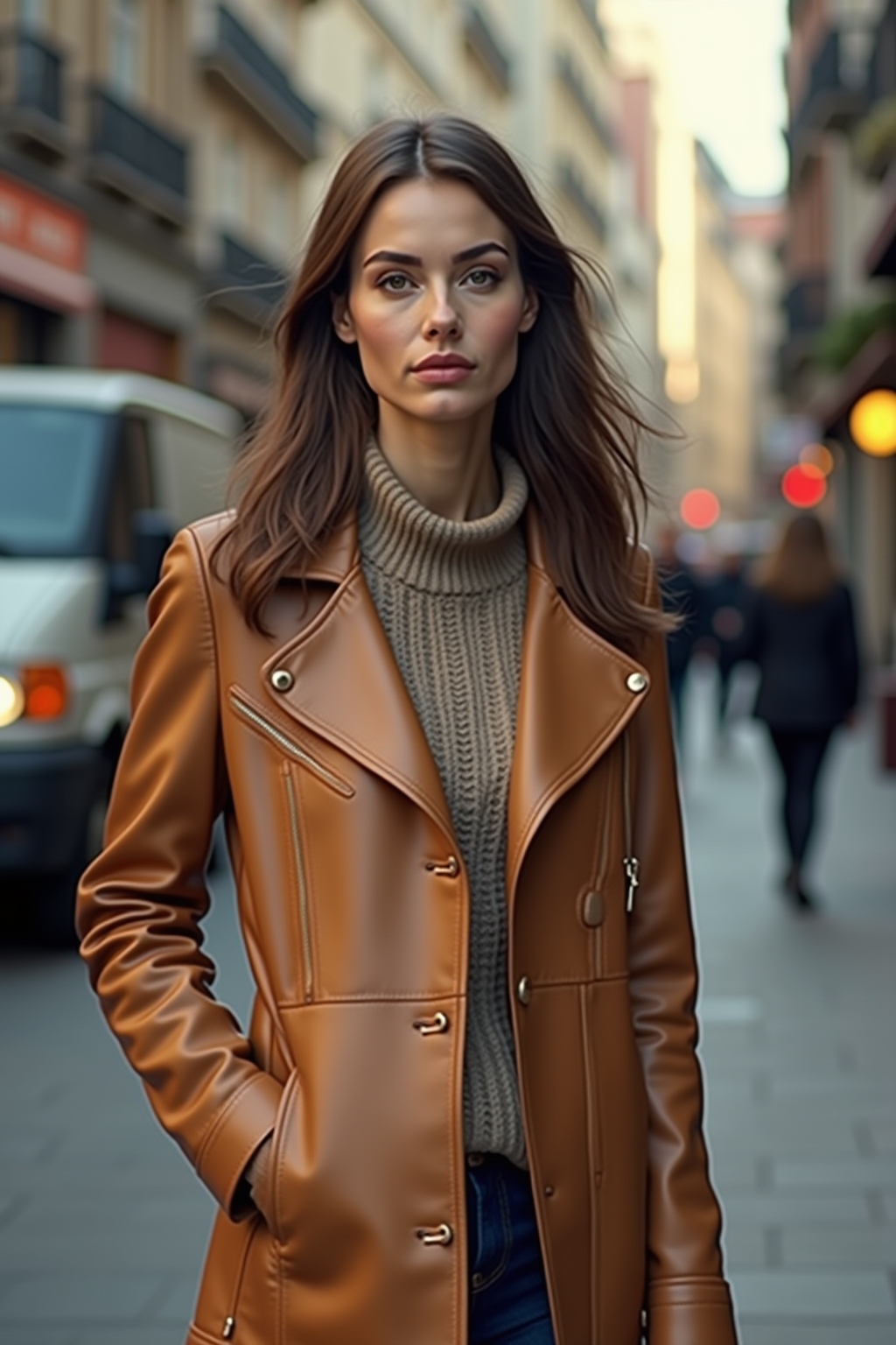 Eine camel-farbene Lederjacke erweist sich als wahrer Verwandlungskünstler, der den nahtlosen Übergang vom Tag- zum Abendoutfit ermöglicht. Für einen lässigen Tages-Look kombinieren Sie die Jacke mit einer hellen Jeans und einem schlichten weißen T-Shirt, während Sie für das Büro auf eine schwarze Stoffhose und eine elegante Bluse setzen können. Zum Sonnenuntergang verwandelt sich Ihre Camel-Lederjacke in ein stilvolles Abend-Statement, wenn Sie sie über ein schimmerndes Top oder ein knielanges Kleid in Kontrastfarben wie Dunkelblau oder Burgunderrot werfen. Mit den richtigen Accessoires – tagsüber minimalistische Goldschmuckstücke, abends statement-Ohrringe und eine kleine Clutch – unterstreicht die vielseitige Lederjacke in Camel ihre Wandlungsfähigkeit von casual bis elegant.