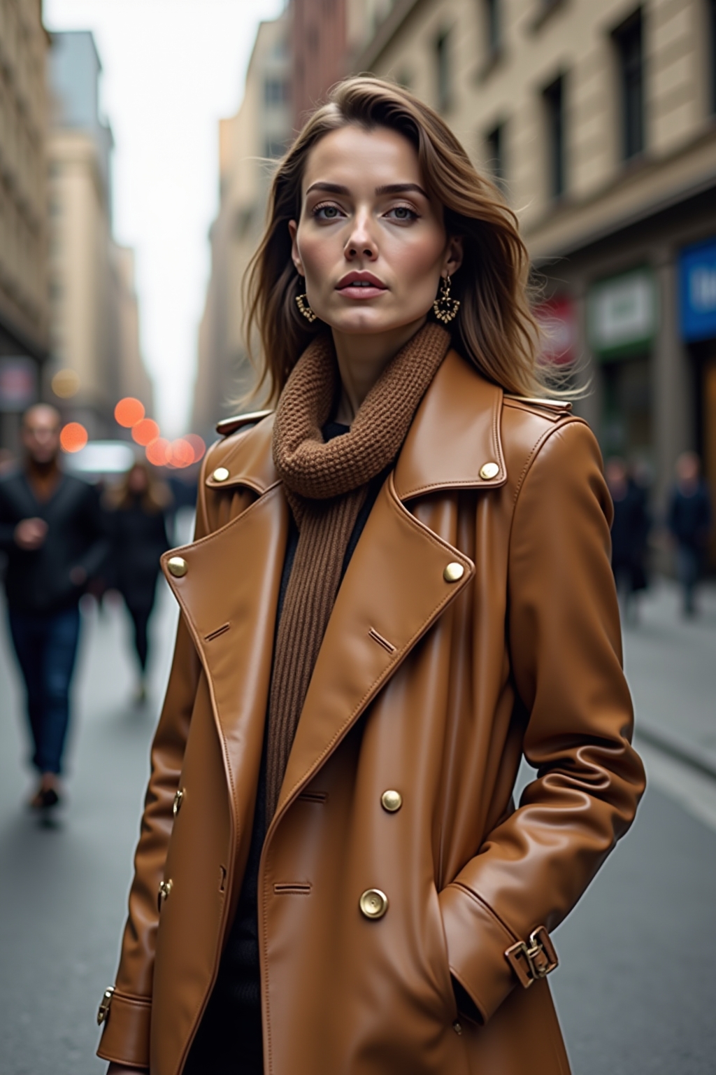• Camel-Lederjacken funktionieren als luxuriöse Statement-Pieces in minimalistischen Outfits