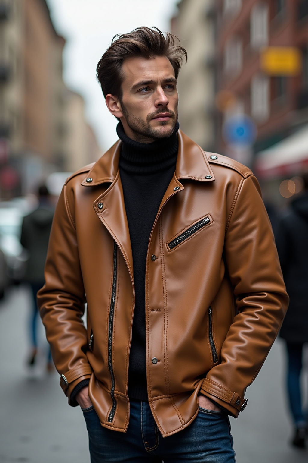 Lässige Streetwear-Outfits: Herren-Lederjacken in Camel richtig stylen