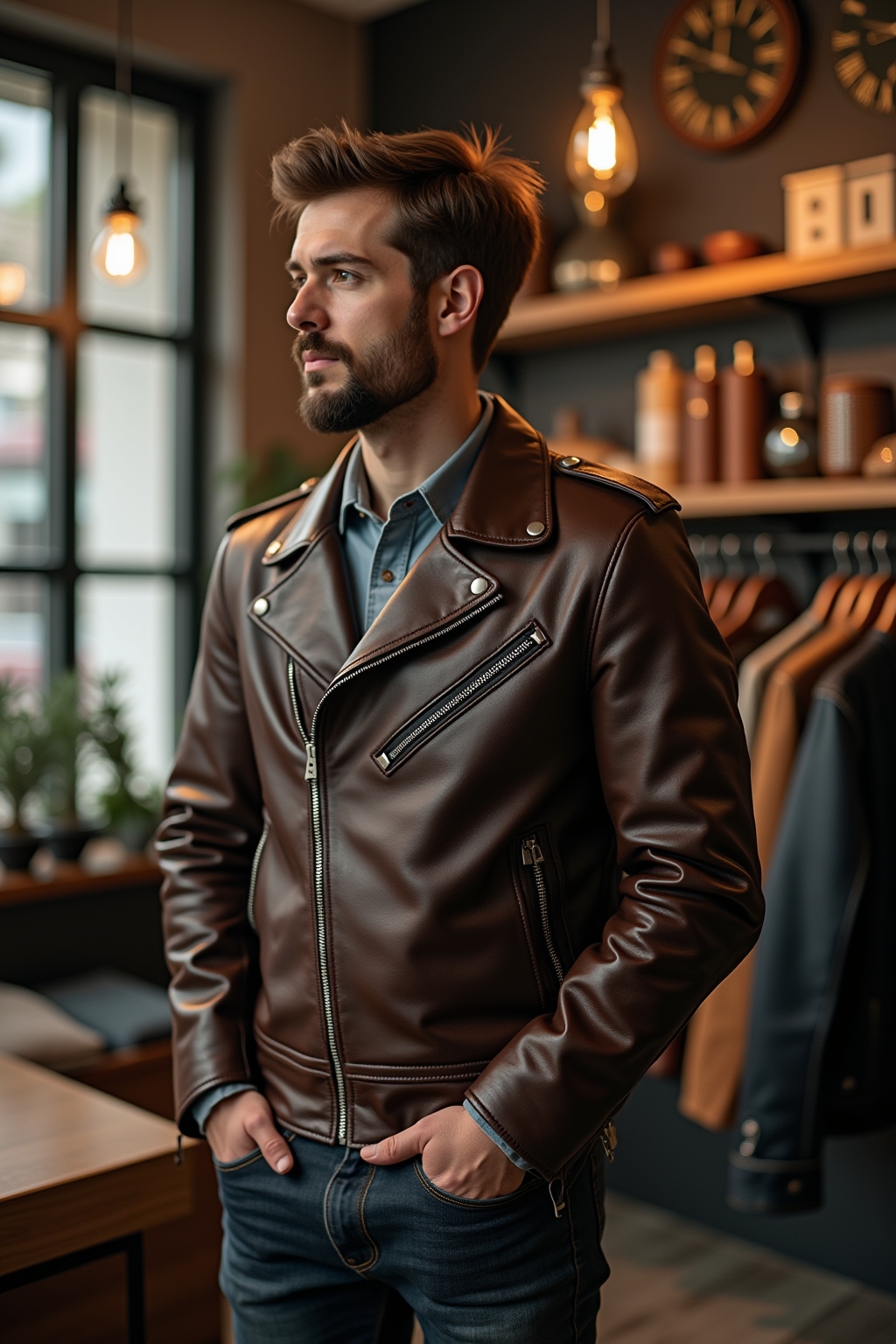 Nachhaltigkeitsaspekt: Achten Sie auf ethisch produzierte Lederjacken oder erkunden Sie die immer besser werdenden veganen Lederalternativen.