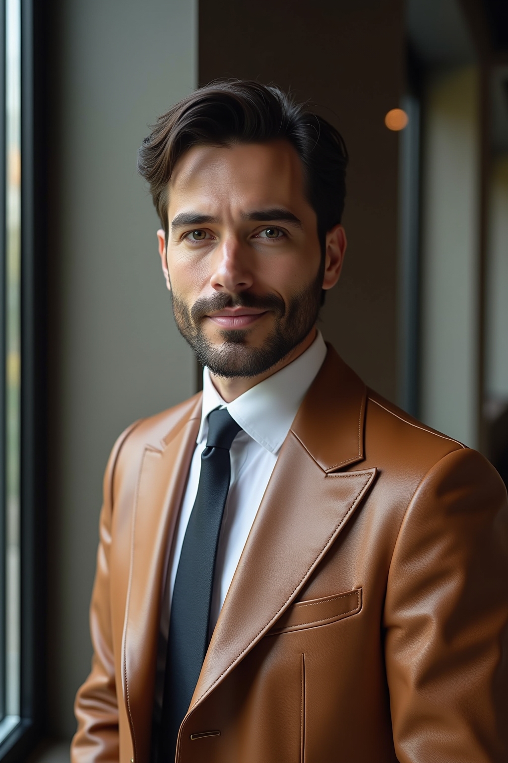 Business-tauglich: Die cremefarbene Lederjacke für Herren im Büro-Kontext