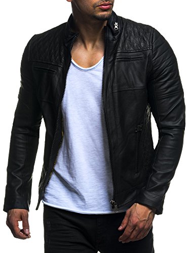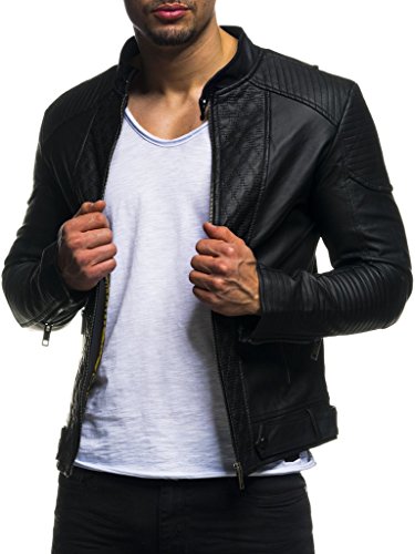 LEIF NELSON Herren Jacke Kunstleder Slim Fit Schwarz