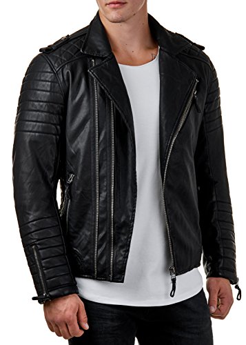 Prestige Homme Herren Kunstlederjacke Biker Schwarz