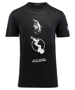 Lanvin, Schnittform: legere Passform, gerader Schnitt, kurzarm, Rundhalsausschnitt, stretchige Baumwollqualität, cooler Vogel-Print auf der Front, gemustertes Patch auf dem linken Ärmel, Pflegehinweis: Handwäsche